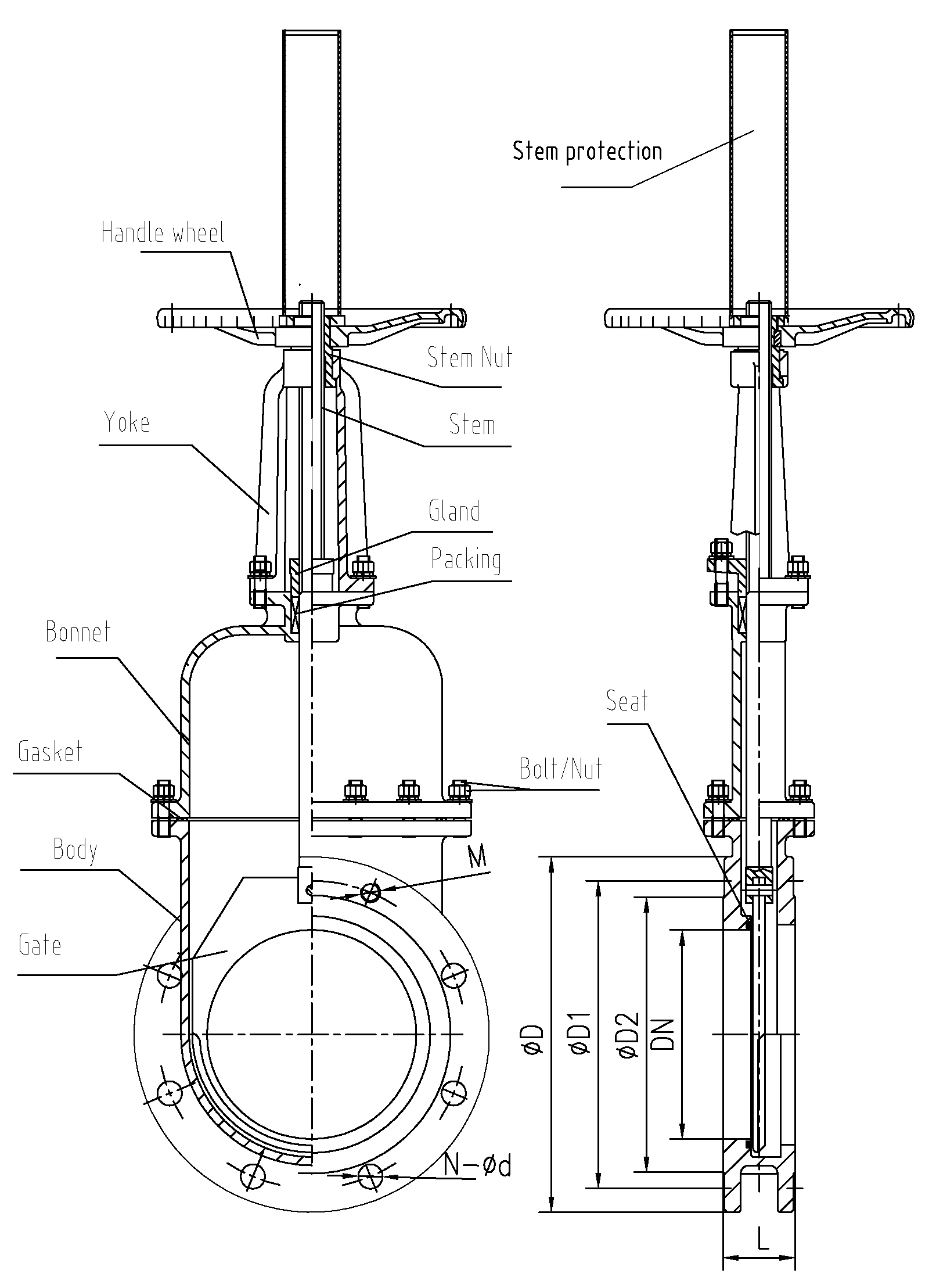 •  bonnet Knife gate valve